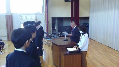 新生徒会任命式及び引き継ぎ式 投稿: 芝西中学校 (11/04) 新生徒会役員一人ひとりに、校長先生から任命書が渡されました。 役員には、これからの芝西中学校がより良くなるよう努めてくれること期待しています。 また、他の生徒には、役員任せにせず、一人ひとりが自分事として学校生活について考えていくことを期待してます。 ☆旧生徒会長からは、これまでの感謝とこれからの期待について話がありました。 Tweet -