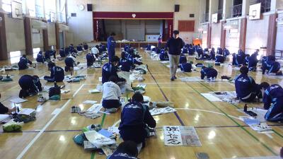 競書会 投稿: 芝西中学校 (07:50) 本日、競書会を実施しました。 筆に馴染みがなく、苦戦している生徒もいましたが、集中して取り組めていました。 また、校長先生も、生徒と一緒に、筆をとっていました。 19日の保護者会で学校した際には、是非、生徒の作品をご覧ください。 1学年:心の成長 2学年:強い信念 3学年:多様な思考 Tweet -