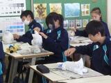 2年生 美術 ランプシェード① 投稿: 芝西中学校 (01/19) カテゴリー: 授業の様子 2年生の美術では張り子のランプシェードを製作しました。 テーマは「生き物」。 和紙を貼るための土台は新聞紙を丸めて作り、鼻や耳、羽などの小さなパーツを作るのは難しそうでした。 土台の上にちぎった和紙を貼っていくのですが、ボンドを溶かした水にびしょびしょになるくらいたっぷりつけるのがポイントだそうです。 Tweet -