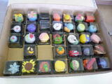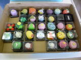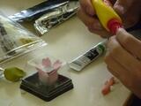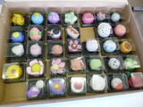 粘土を薄くのばして餡(濃い色の粘土)を包んだり、ボンドを塗ってツヤを出したり、乾燥させた粘土を粉にしてかけたり、どうしたら本物のように見えるか工夫しながら作っていました。