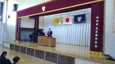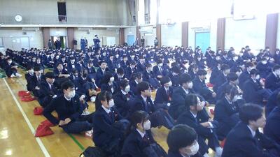 また、生徒会代表生徒から、「冬休みはどんな休みでしたか?生活リズムを整えましょう。生徒会のスローガン 「彩(いろどり)」を覚えてください。クリーン活動にご協力ください。3学期は、学習のまとめの時期です。」とお話がありました。