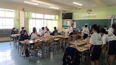 写真は、給食の時間の様子です。
